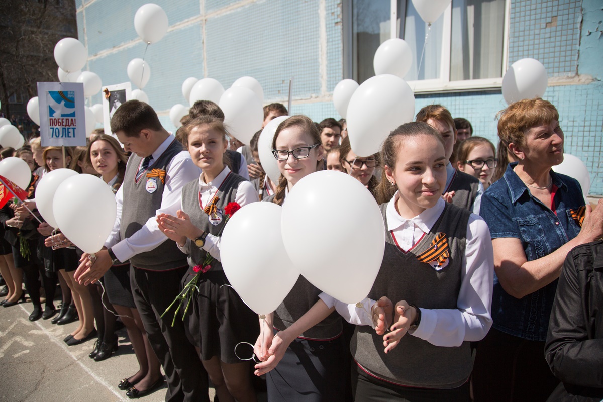 Как говорят организаторы, событие это для Октябрьского района историческое. Ученики почтили память своих родственников, воевавших против фашистских захватчиков: школьники из старших классов прошлись маршем около мемориала, а те, кто помладше, выстроились в линейку, держа в руках белые шары и фотографии родных и близких, погибших в военное время. С их портретами 9 мая эти ребята пройдут в «Бессмертном полку».
