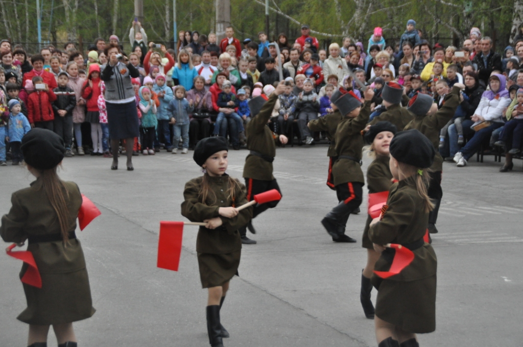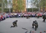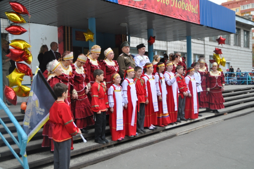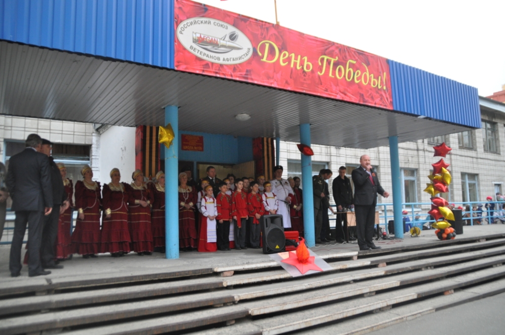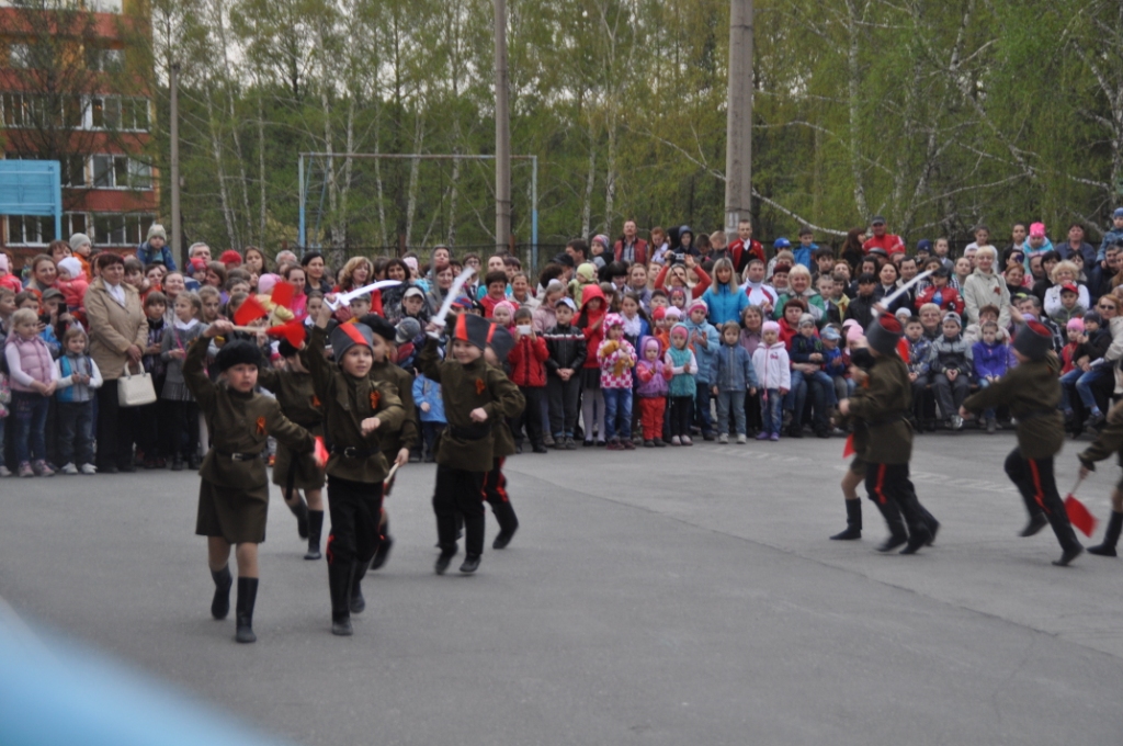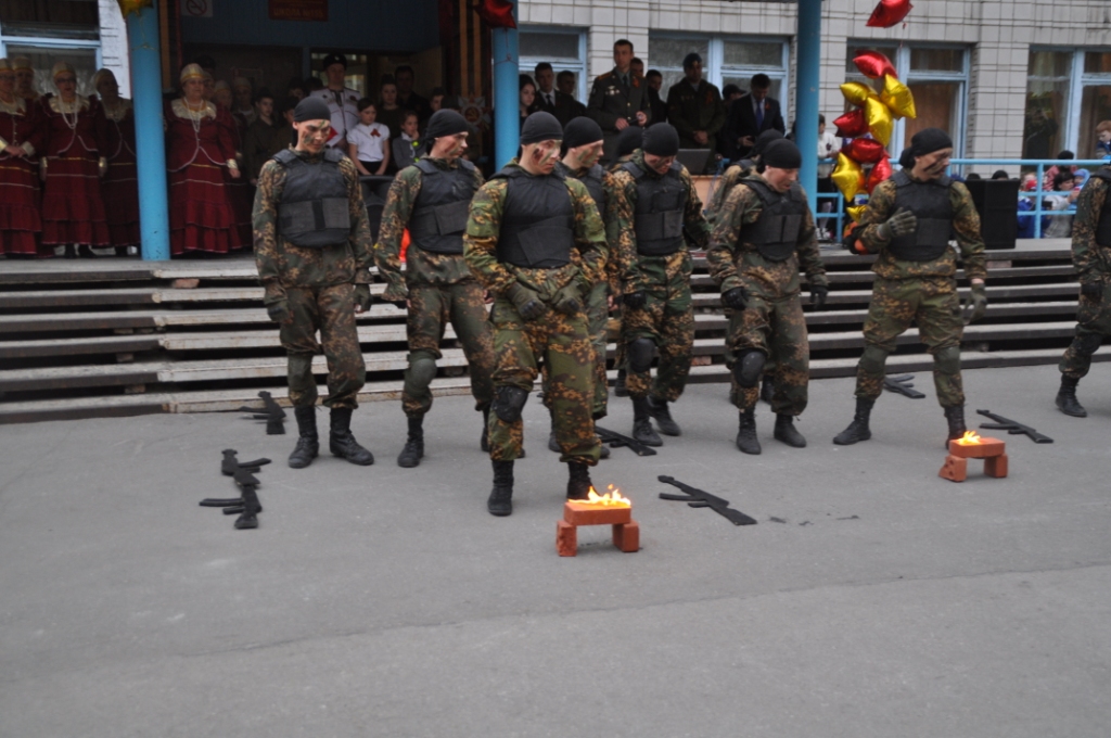 По традиции школа проводит праздник совместно с ТОС, НВИ МВД РФ. Курсанты не только вели праздничную программу, но и исполнили песни фронтовых лет, а мальчишки, конечно, с восторгом встречали показательное выступление курсантов роты спецназа НВИ. После таких встреч они все мечтают стать военными. В завершении праздника все желающие отведали «солдатской каши».