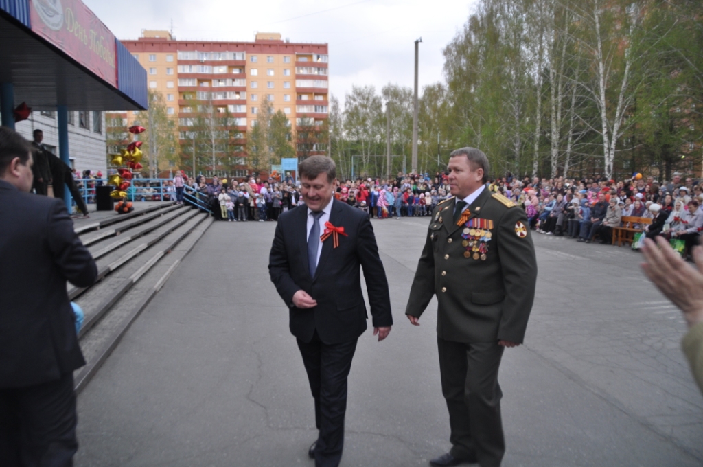 С благодарственными словами Ветеранам и напутствием молодому поколению выступили мэр г. Новосибирска Анатолий Евгеньевич Локоть, а также глава администрации Октябрьского района Петр Иванович Прокудин.