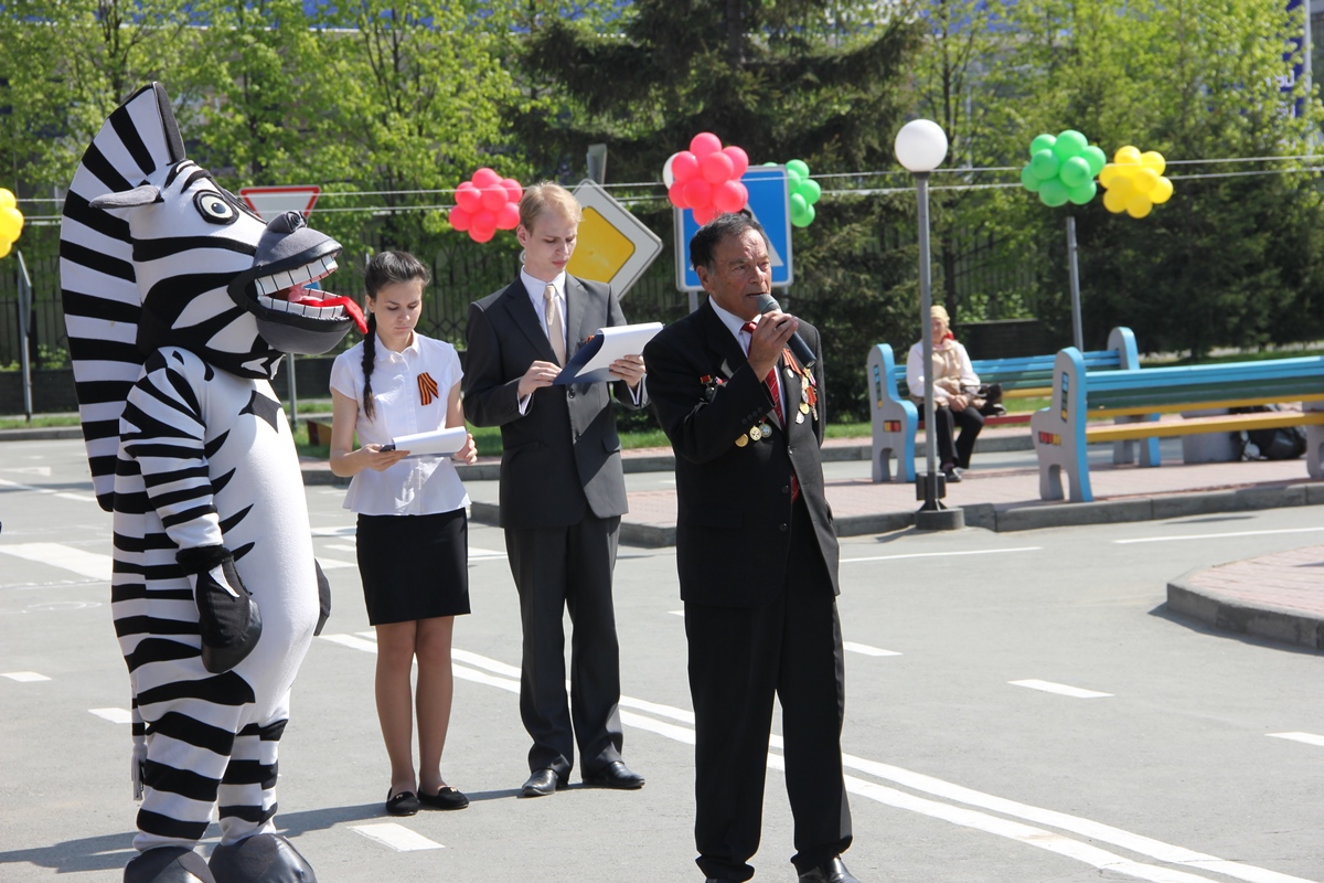 Славной победе советского народа в Великой Отечественной войне посвящался конкурс-фестиваль «Безопасное колесо – 2015». На торжественную линейку были приглашены гости – участники Великой отечественной войны: Некрасов Фёдор Фёдорович, Петрачков Василий Иванович, ветеран педагогического труда, бывший малолетний узник фашистских концлагерей Шихваргер Григорий Авраамович