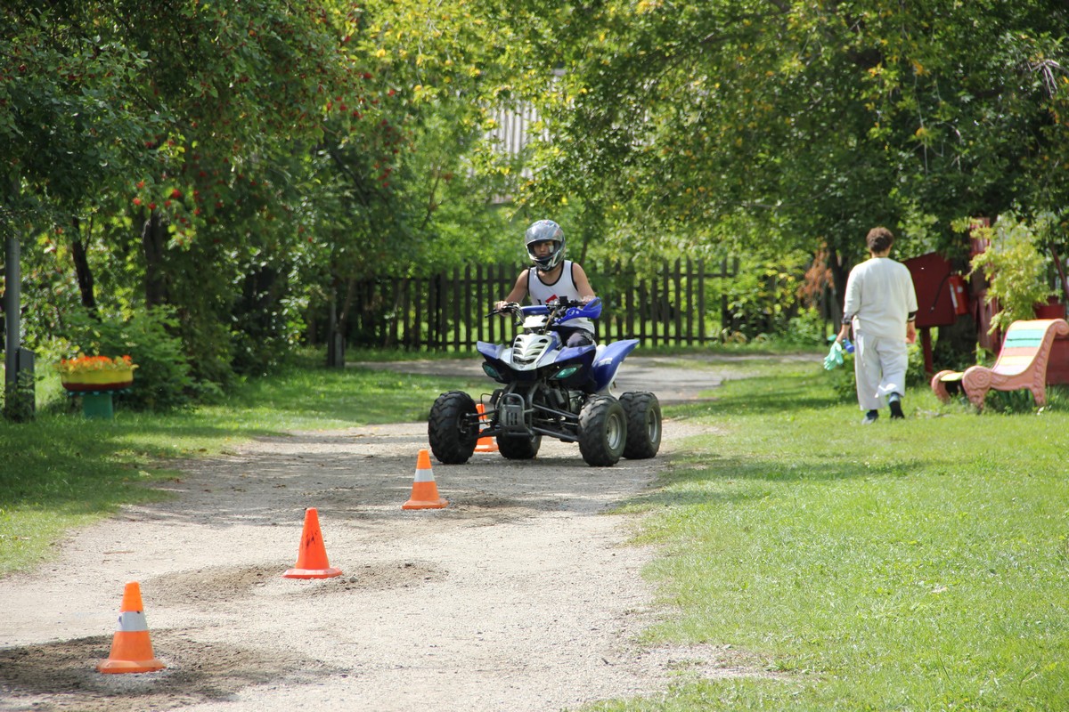 Для участников смены была подготовлена насыщенная программа по Правилам дорожного движения, которую реализовали педагоги «Детского автогородка». Ежедневно проводились занятия по Правилам дорожного движения: лекции, беседы, медицинская подготовка, фигурное вождение велосипедов, кроме этого, ребята участвовали в различных конкурсах и викторинах на знание Правил дорожного движения, в велосоревнованиях «Безопасное колесо», в соревнованиях по фигурному вождению веломобилей. Педагоги помогали детям разобраться в непростых заданиях, консультировали детей, разъясняли поведение в различным дорожных ситуациях, отвечали на возникающие вопросы. С особым воодушевлением ребята проходили этап виртуозного вождения квадроцикла, где необходимо было проехать небольшой участок с препятствиями. Трасса была не из легких и покорилась не всем конкурсантам.