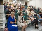 Татьяна Дмитриевна Яковенко, заведующий отделом здоровья и развития детей Городского центра образования и здоровья «Магистр», доцент кафедры психологии и педагогики НГПУ: «Действительно сегодня многие очень хорошо понимают, что традиционные формы работы, отличающиеся формализмом, эпизодичностью контактов, изжили себя и нужны новые подходы к организации взаимодействия с родителями. Нужно научиться строить с родителями партнерские отношения, видеть в них своих единомышленников, союзников – они главные воспитатели ребенка, а педагоги должны суметь помочь. Сегодня мы пригласили для выступления и педагогов дошкольного образования, и учителей начальных классов, социальных педагогов, и, конечно же, заместителей директоров школ по воспитательной работе, которые организуют в рамках школы этот сложный процесс коммуникаций, контактов. У нас представлены выступления, отражающие лучший опыт образовательных учреждений Новосибирска. Новые подходы связаны с реализацией идеи сотрудничества, и это попытка образовательных учреждений вести совместную деятельность разных видов. Это могут быть мероприятия спортивно-оздоровительной направленности, художественно-эстетической и трудовой. Я в частности буду говорить о родительских клубах. Это тоже на сегодня очень востребованная и, на мой взгляд, уже доказавшая свою эффективность, форма сотрудничества. Сегодня в образовательных учреждениях пытаются уйти от традиционных родительских собраний, которые грешат «монологичностью», – они проходят в форме круглого стола, дискуссии, педагоги-психологи приглашают родителей на детско-родительские, тренинговые группы».