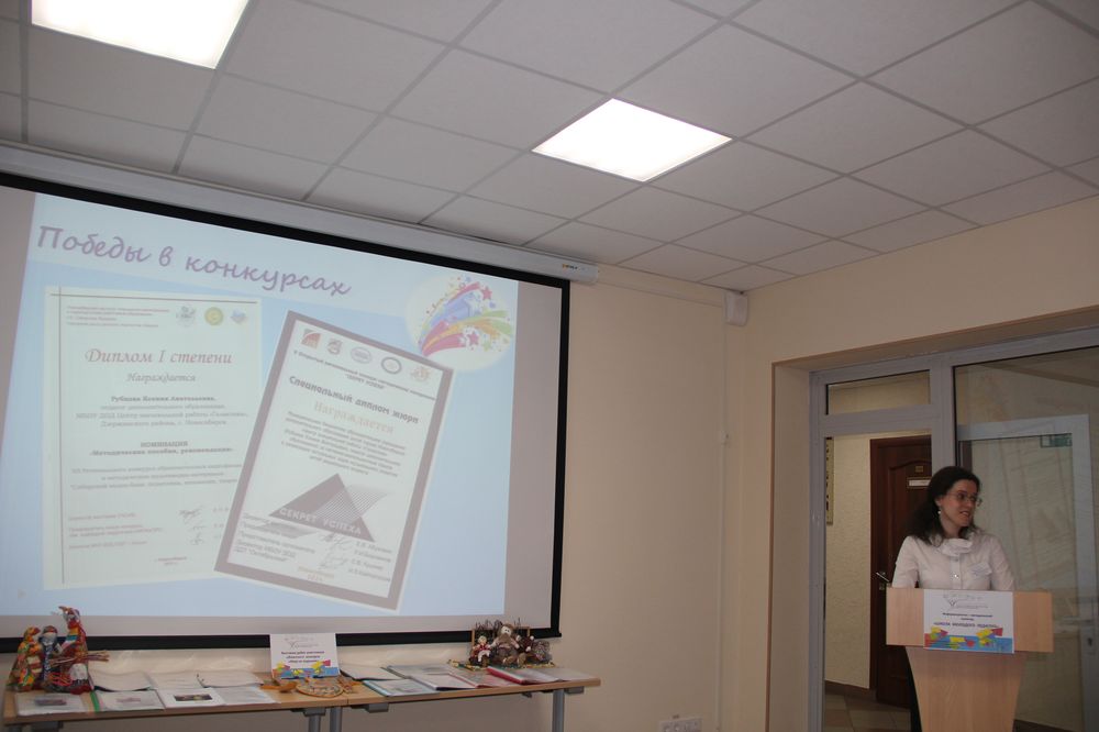 С презентацией нового информационно-методического сборника «Шаги к успеху» выступила его составитель методист художественного отдела «Центра развития творчества детей и юношества» Карабович Ольга Андреевна. Все участники информационно-методического семинара «Школа молодого педагога» получили сертификаты и комплекты методических материалов.