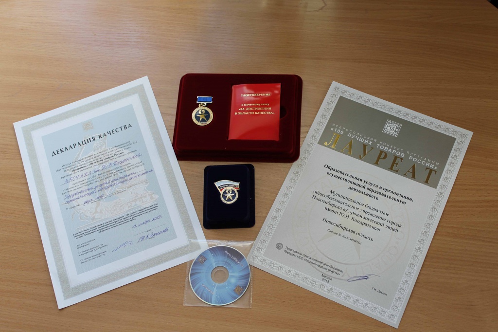 Аэрокосмический лицей им. Ю.В. Кондратюка принял участие во Всероссийском конкурсе «100 лучших товаров России». Среди претендентов были лучшие предприятия города Новосибирска и области. На региональном этапе были рассмотрены документы лицея и экспертное жюри из опытных специалистов в области качества Новосибирского центра метрологии сочли достойным представить лицей на Всероссийский уровень.