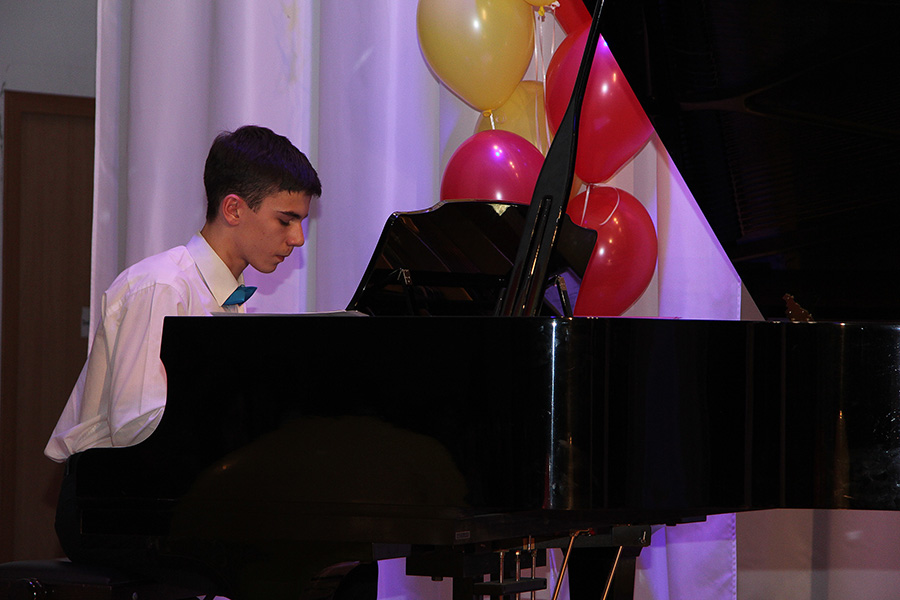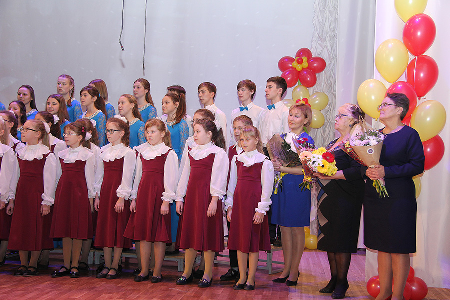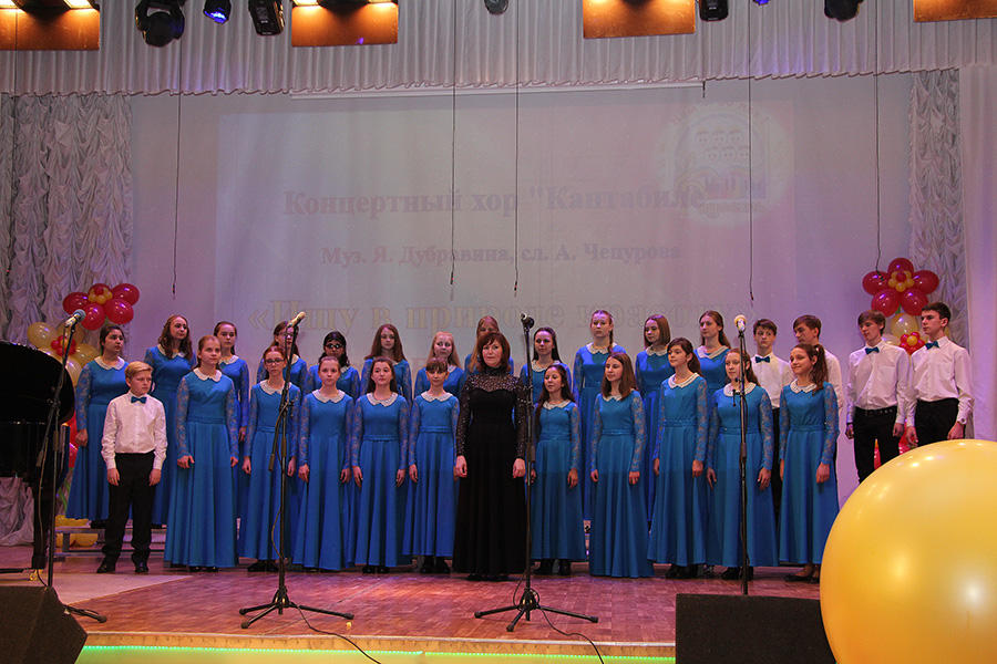 На сцене с праздничными номерами и поздравлениями выступили младший хор «Радуга», средний хор «Гармония», концертный хор «Кантабиле», солисты студии Сваровская Анастасия, Шевцова Елизавета, Жеребненко Никита; также в концерте прозвучали фортепианные номера в исполнении Панкратова Леонида (педагог Е.П. Реутова) и фортепианного дуэта Джафарова Фарида – Жеребненко Никита (педагог Н.А. Пивоварова).