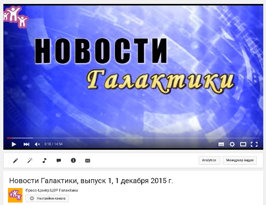 В начале декабря «Детский Пресс-центр» ЦВР «Галактика» запустил трансляцию на видеохостинге YouTube.