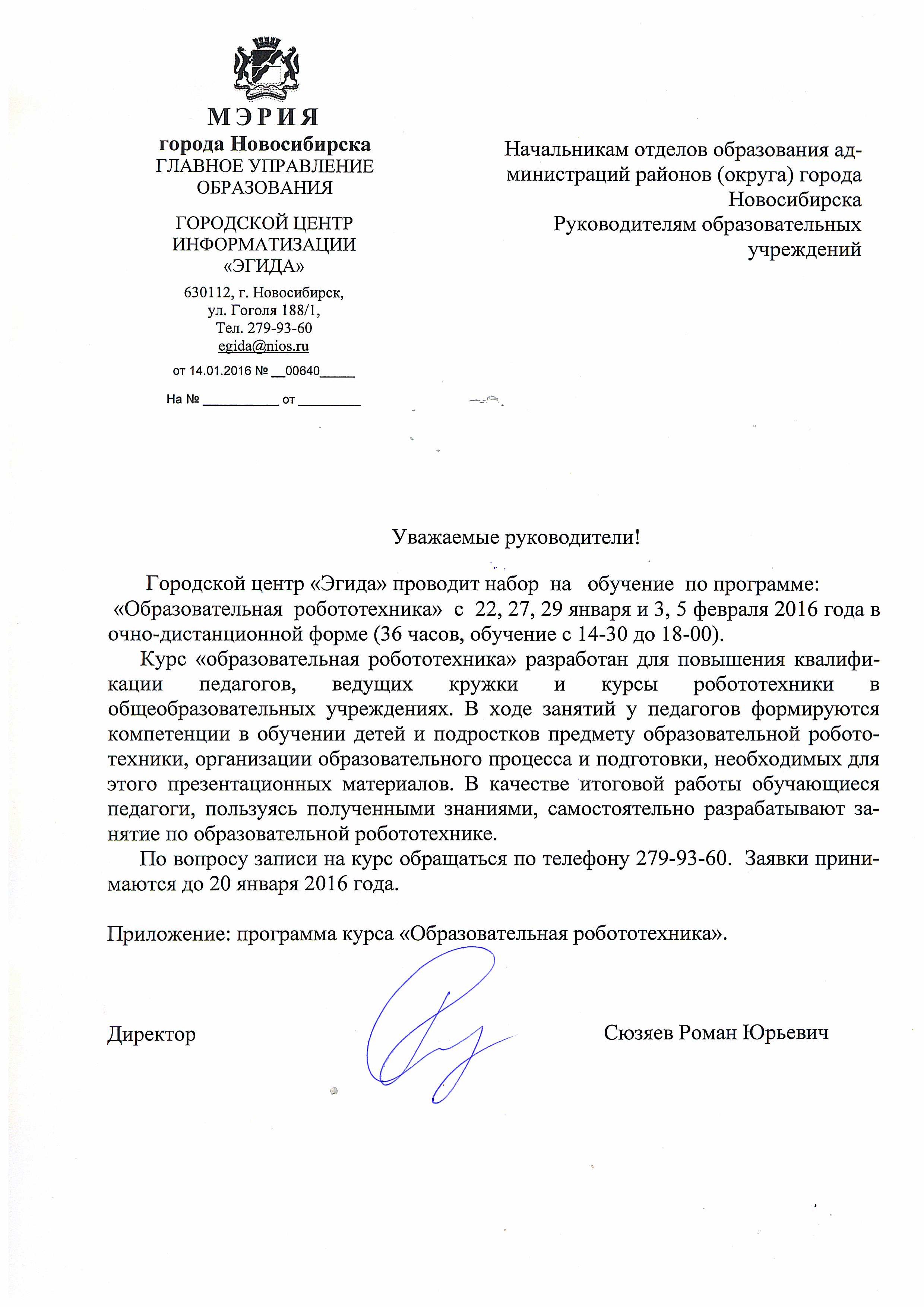 14.01.2016. Эгида приглашает на курсы по робототехнике.