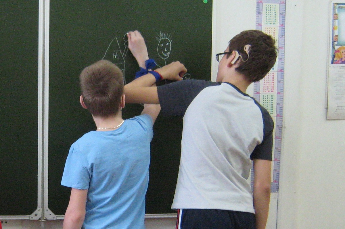 Работа в группах и выполнение задания «Сиамские близнецы» учили ребят взаимодействию друг с другом. Пришли к выводу, что в совместном деле необходимо чувствовать друг друга, уметь уступать, договариваться, в общем, слаженность в действиях. Так разговор перешел о дружбе, и ребята даже вместе «зажгли» Солнце Дружбы в классе, лучами которого были написанные каждым свои слова «Дружба – это…».