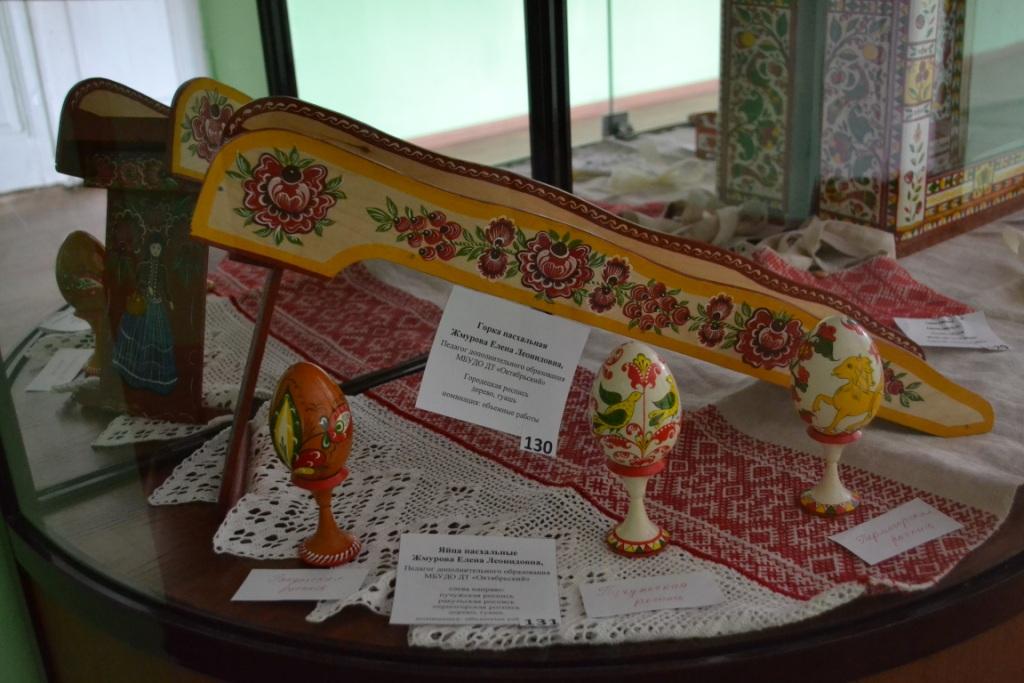 Работы представлены в различных направлениях декоративно-прикладного творчества: это и вышивка крестом, бисероплетение, резьба и роспись по дереву, кукла и многое другое.