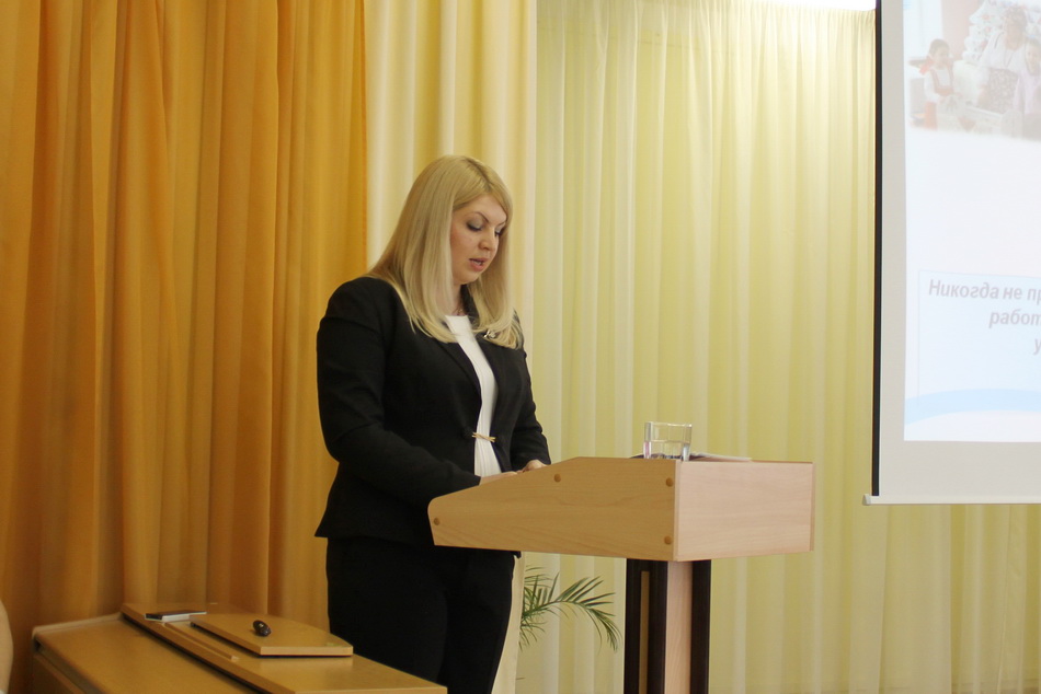С приветственным словом к собравшимся обратились начальник отдела дошкольного образования ГУО мэрии города Новосибирска Симантовская Елена Викторовна и директор МКУДПО «ГЦРО», к.п.н. Щербаненко Олег Николаевич. Основной доклад «Развитие муниципальной системы дошкольного образования в городе Новосибирске как условие реализации ФГОС ДО» был представлен Натальей Николаевной Копаевой, заместителем директора МКУДПО «ГЦРО». Старший методист научно-методического центра сопровождения ФГОС ДО, НОО, ООО Ирина Викторовна Ермакова в своем выступлении обозначила проблемы реализации ФГОС ДО в практике детских садов города Новосибирска, возможные пути их преодоления. Опытом методического сопровождения педагогов дошкольных образовательных организаций Калининского района в период введения и реализации ФГОС ДО поделилась с собравшимися методист МКУДПО «ГЦРО» Городского центра развития образования Виктория Викторовна Тимофеева. Людмила Викторовна Екимова, и. о. заведующего детским садом № 234, рассказала о преимуществе проектного управления в ДОУ. «Мотивация педагогов как условие повышения качества образования в ДОУ» стала темой выступления Татьяна Владимировна Геращенко, заведующий детским садом № 32. Елена Анатольевна Кондратьева, заведующий детским садом № 70, представила опыт создания модели системы дополнительного образования в ДОУ. «Методическое сопровождение педагогических работников по повышению уровня профессиональной компетентности в условиях реализации ФГОС ДО» – тема, которую раскрыли в своих выступлениях Татьяна Алексеевна Усикова, старший воспитатель детского сада № 411, и Елена Алексеевна Запрудская, старший воспитатель детского сада № 35. Большой интерес вызвали выступления Людмилы Николаевны Галкиной, старшего воспитателя детского сада № 439, «Школа младшего воспитателя: создание эффективной системы методической работы, направленной на повышение психолого-педагогической компетентности младших воспитателей» и Елены Викторовны Рыжковой, старшего воспитателя детского сада № 391 – «Сотрудничество с родителями как обязательное условие обеспечения целостности жизни ребёнка».