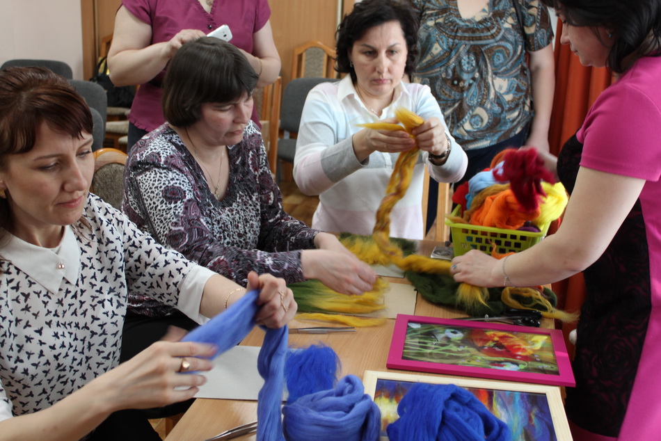 21 апреля детский сад № 429 встречал музыкальных руководителей, педагогов по изобразительной деятельности, воспитателей. Первая часть работы секции «Современные подходы к художественно-эстетическому развитию детей в ДОО» была посвящена обсуждению новых подходов к организации художественно-эстетического развития детей. Педагоги рассматривали различные аспекты развития творческих способностей, эмоциональной восприимчивости детей дошкольного возраста. После перерыва начали работу мастер-классы, на которых педагоги смогли на практике оценить достоинства таких видов художественно-изобразительной деятельности, как фоиларт, работа с нитью, нетрадиционные техники рисования, в том числе шерстяной акварелью.