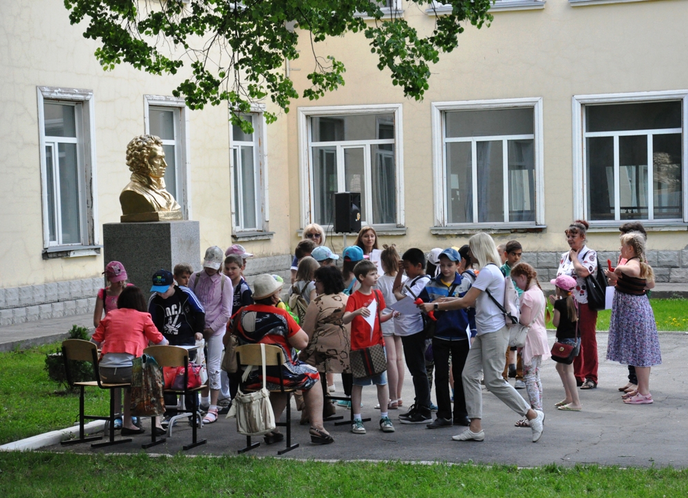 И завершалось путешествие на станции «Остров Буян»: здесь, во дворе, у бюста великому поэту, ребята по очереди читали «Сказку о царе Салтане». А затем каждый чтец расписался в книге напротив прочитанного отрывка – это на память библиотеке о проведённой акции.