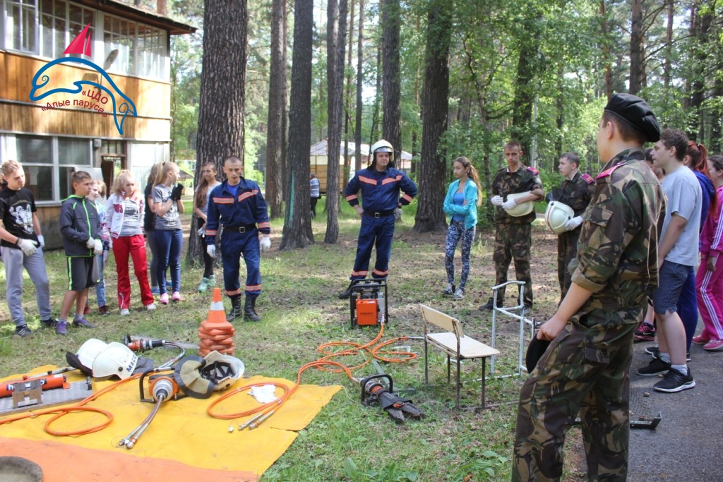Девчонки и мальчишки в возрасте от 12 до 17 лет прошли обучение по различным дисциплинам, таким как: аварийно-спасательные работы, поиск и спасение пострадавших при ЧС техногенного характера, пожарно-техническая полоса, работа с гидравлическим аварийно-спасательным инструментом на ДТП, поисково-спасательные работы на акватории. Также с ребятами проводились занятия по медицине, РХБЗ, психологической помощи пострадавшим, горной подготовке. Обучение для ребят проводили педагоги Центра дополнительного образования «Алые паруса», спасатели Муниципальной аварийно-спасательной службы «АСРиГЗ» и пожарные 11 ПЧ ФГКУ «5 отряд ФПС по Новосибирской области». После прохождения учебно-тренировочных занятий, команды приняли участие в соревнованиях. Для участников смены были организованы вечерние досуговые мероприятия и конкурсные программы.