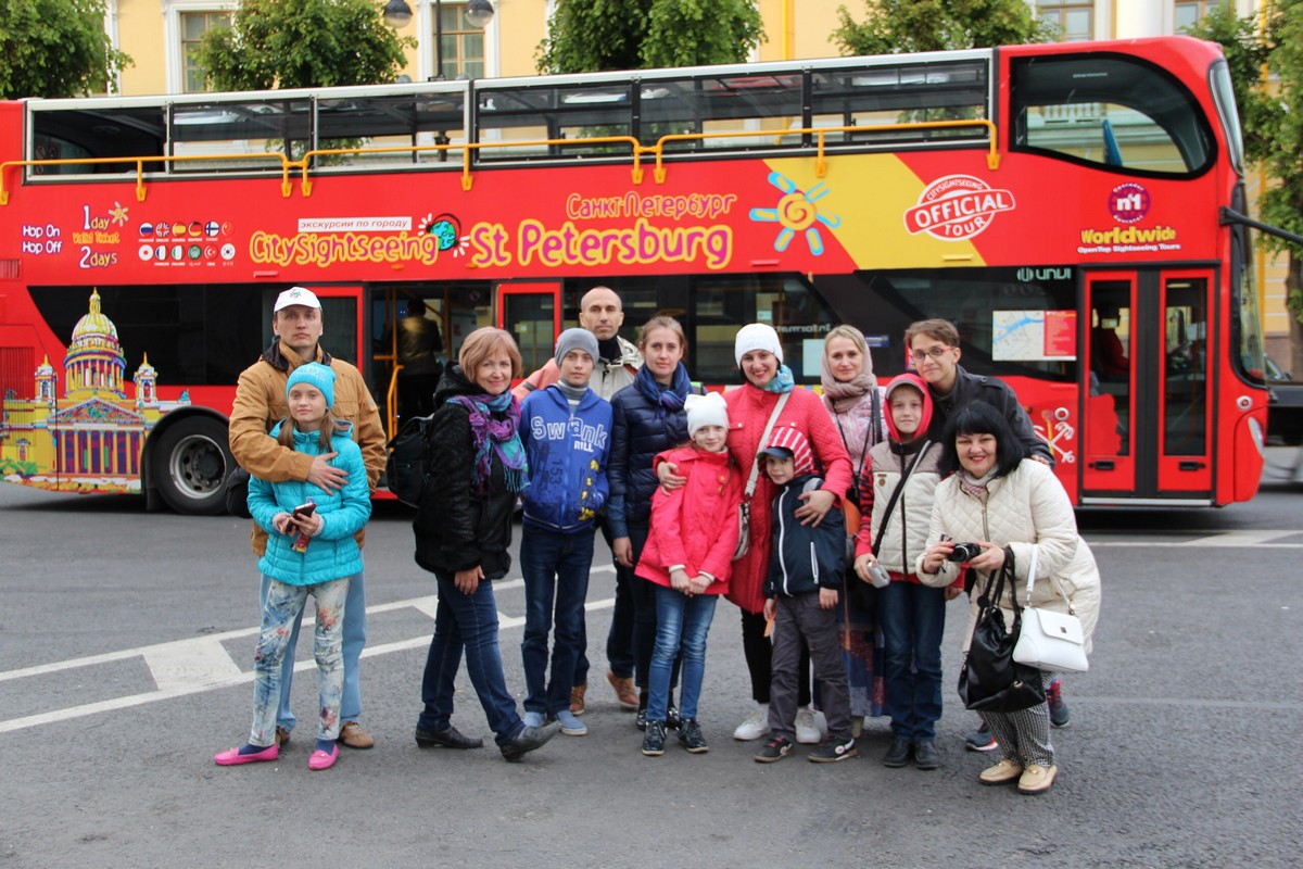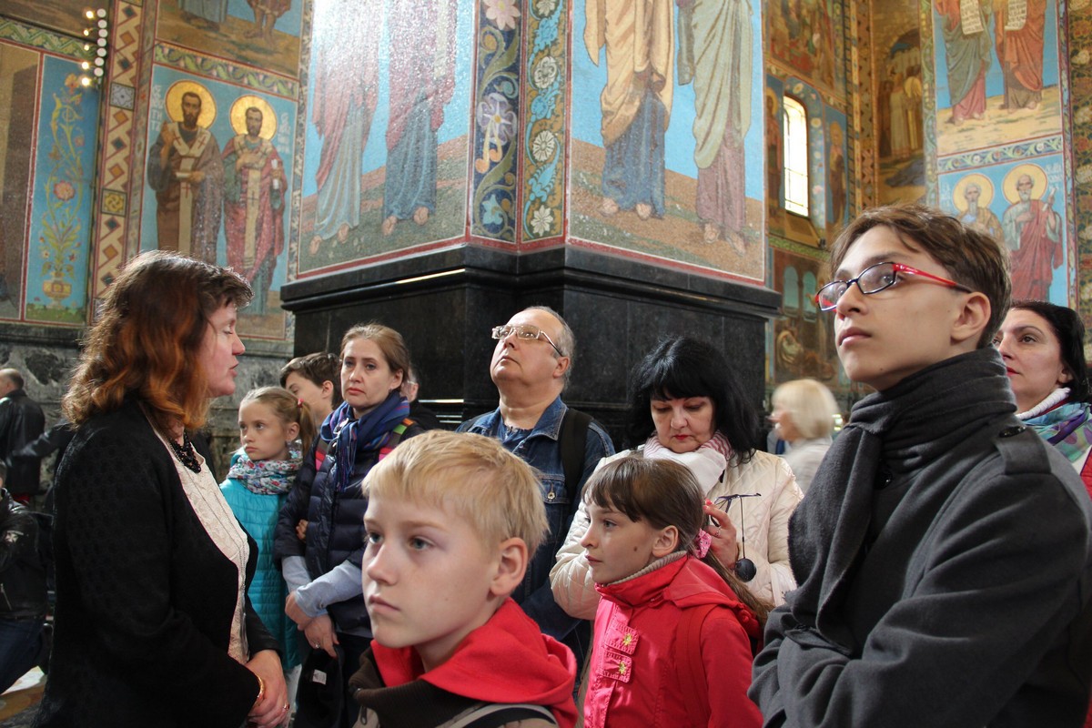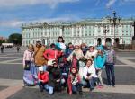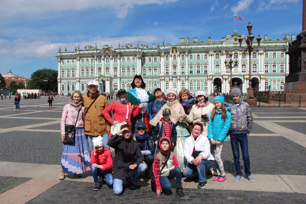 Шли по «Невскому» мимо «Аничкового моста», «Фонтанки», «канала Грибоедова», «Казанского собора», реки «Мойки»! Всё хотелось запечатлеть, всюду побывать. А потом единодушно отправились на Дворцовую площадь, где фотографировались с ряжеными артистами, которые были в образе Петра Первого и его жены Екатерины. После, на двухэтажном автобусе отправились на обзорную экскурсию по городу, прослушали интереснейшую экскурсию в храме «Спаса на крови» и к 16-00 прибыли на репетицию к Камерному театру Малыщицкого, где должен был на следующий день проводиться фестиваль.