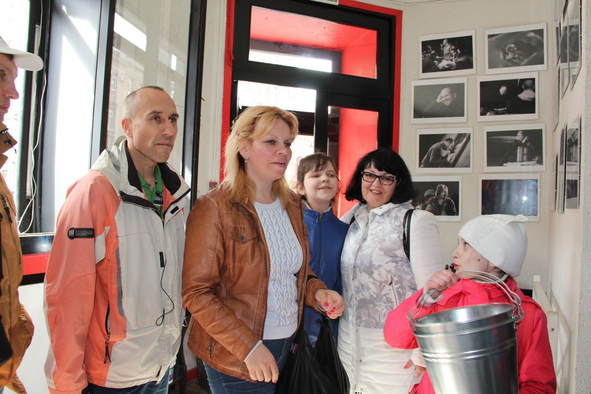 Пришли и ахнули: мы понимали, что театр камерный, но не до такой же степени! Теснота везде: в фойе, за кулисами, в гримёрке (если таковой можно назвать складское помещение с реквизитом). Но больше всего удивили размеры самой сцены. Она напоминала длинный и узкий чулок. На ней можно показывать только моноспектакли (где играет один актёр). Пришлось срочно на ходу перестраивать мизансцены всего нашего многопланового спектакля. Забегая вперёд скажу, что в момент показа спектакля, зальчик театра был забит так, что дети-зрители сидели перед членами жюри на полу и их ноги ещё на метр сократили пространство сцены. Но если бы это было единственным неудобством во всей этой истории. Накануне перед выступлением оказалось, что исполнитель роли папы Люси не сможет приехать на фестиваль. Что делать? Нужно было срочно принять решение в чужом городе, где нет ни одного знакомого артиста. Поэтому, Антон Рябухин, который исполнял роль немца Карла, без промедления согласился (а что делать?) сыграть две роли – папы Люси и немца Карла, за что в последствии получил прозвище «Папа Карло»!