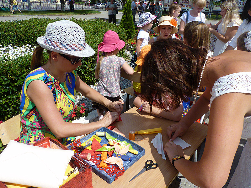 В это же время перед администрацией работала «Площадь мастеров», на которой педагоги дополнительного образования ЦВР «Галактика» представили пять мастер-классов по декоративно-прикладному творчеству. Мастер-классы привлекли внимание жителей Дзержинского района, как маленьких, так и взрослых, которые с большим энтузиазмом изготовляли сувениры в разных техниках.