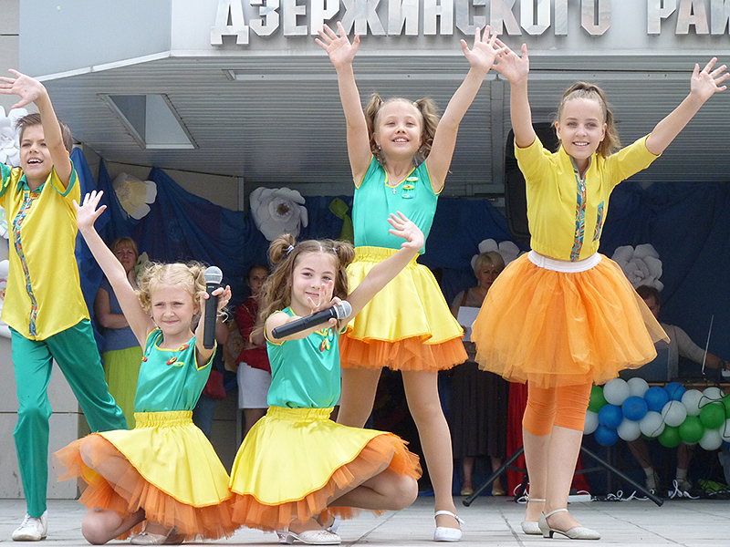 На площадке администрации прошла концертно-развлекательная программа Центра внешкольной работы «Галактика», вела которую педагог-организатор О.В. Новикова. Перед зрителями выступили образцовый коллектив «Студия танца «Звезды Галактики» с танцем «Сибирская плясовая», учащиеся студии спортивного бального танца под руководством И.А. Воропаева с большим бальным танцем, студия эстрадного вокала «Жемчужина» с несколькими вокальными композициями. Ведущая программы загадывала загадки юным дзержинцам, вместе с детьми пела и танцевала.
