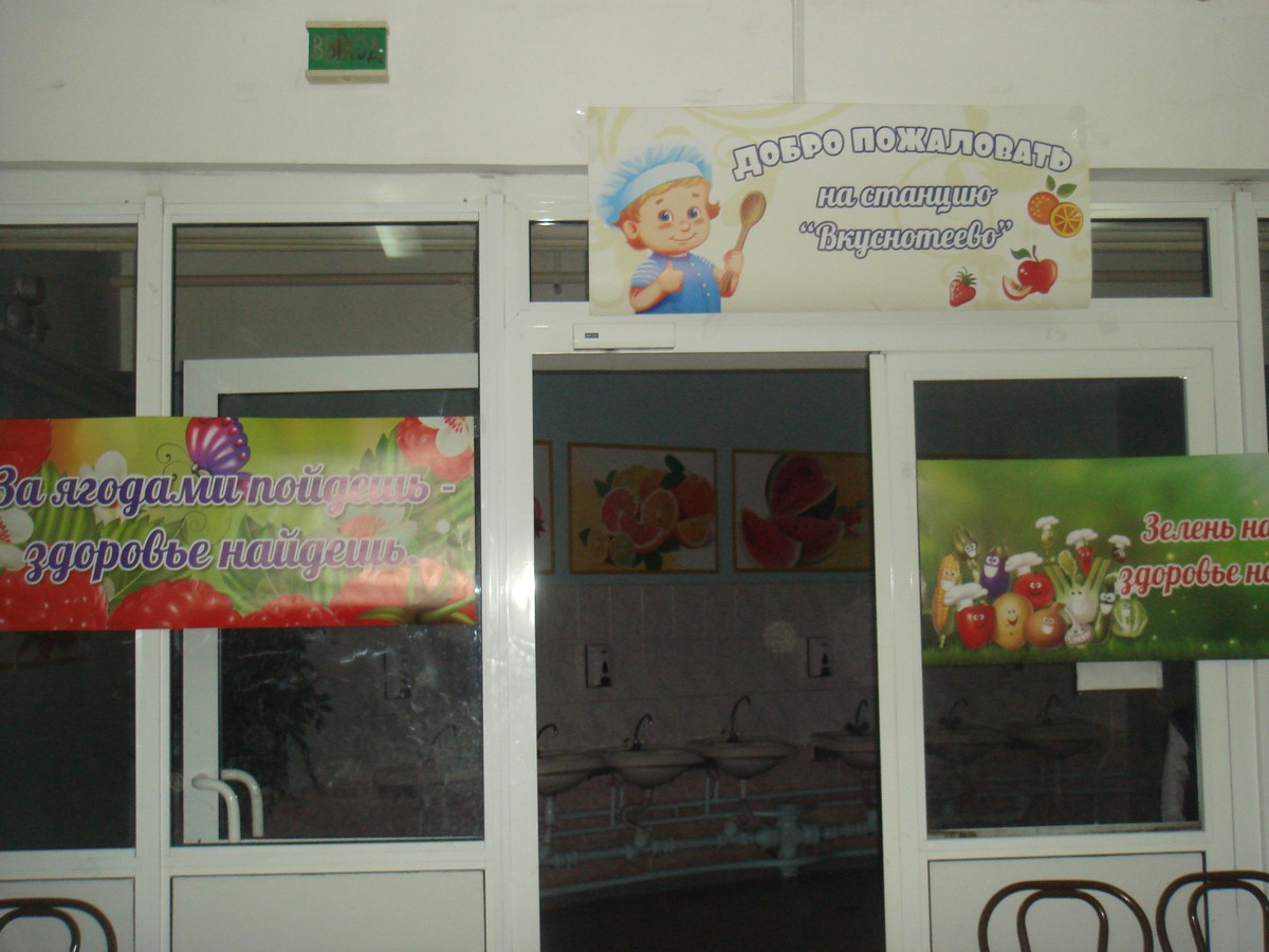 Обеденный зал столовой был оформлен композициями из цветов, фруктов, овощей, яркими плакатами с пословицами и поговорками о пользе употребления последних, фоном звучали мелодии к детским песням с соответствующей проводимому мероприятию тематикой, был оформлен специальный уголок с рисунками детей, приуроченными к этому дню.