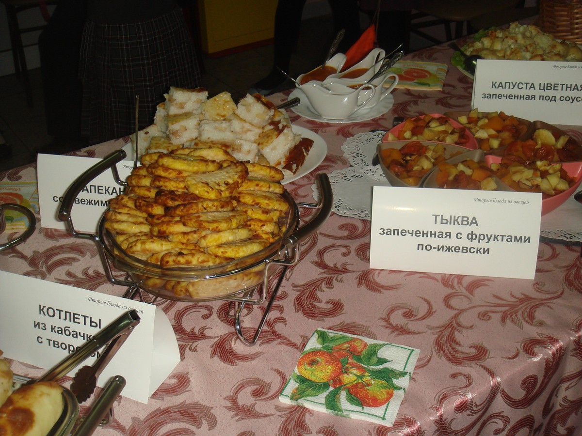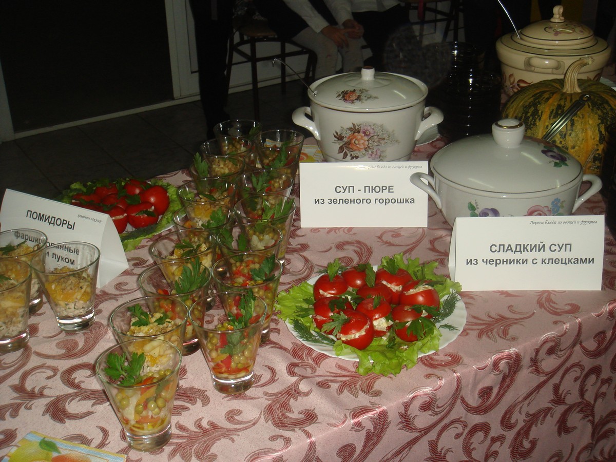 Кроме этого для дегустации обучающихся и родителей был предложен широкий ассортимент закусок, первых, вторых блюд, десертов из овощей и фруктов.