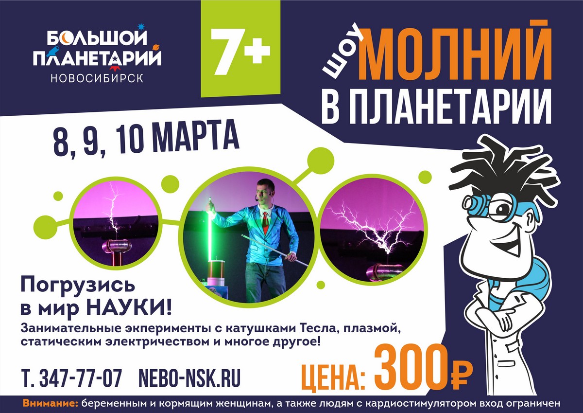 С 8 по 10 марта Большой новосибирский планетарий приглашает прекрасных дам на «Шоу Молний».
