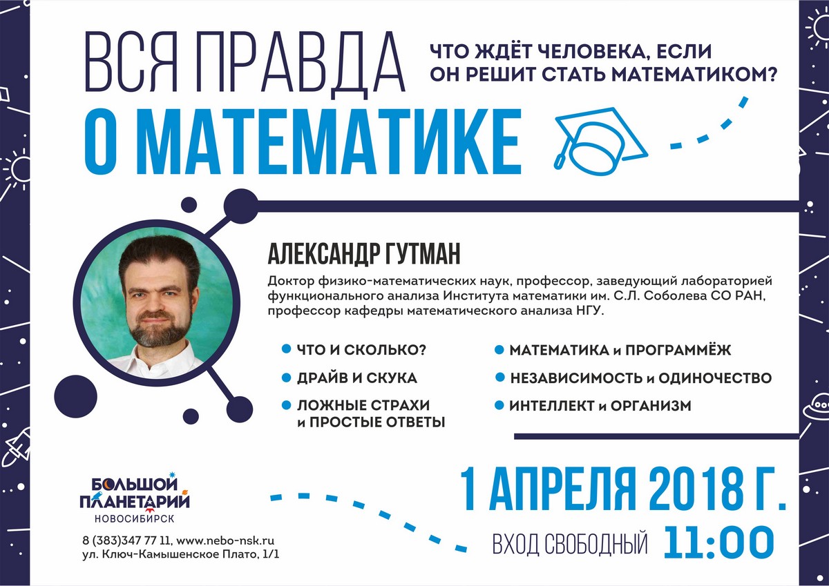 1 апреля в 11:00 в Большом новосибирском планетарии пройдет лекция «Вся правда о математике».