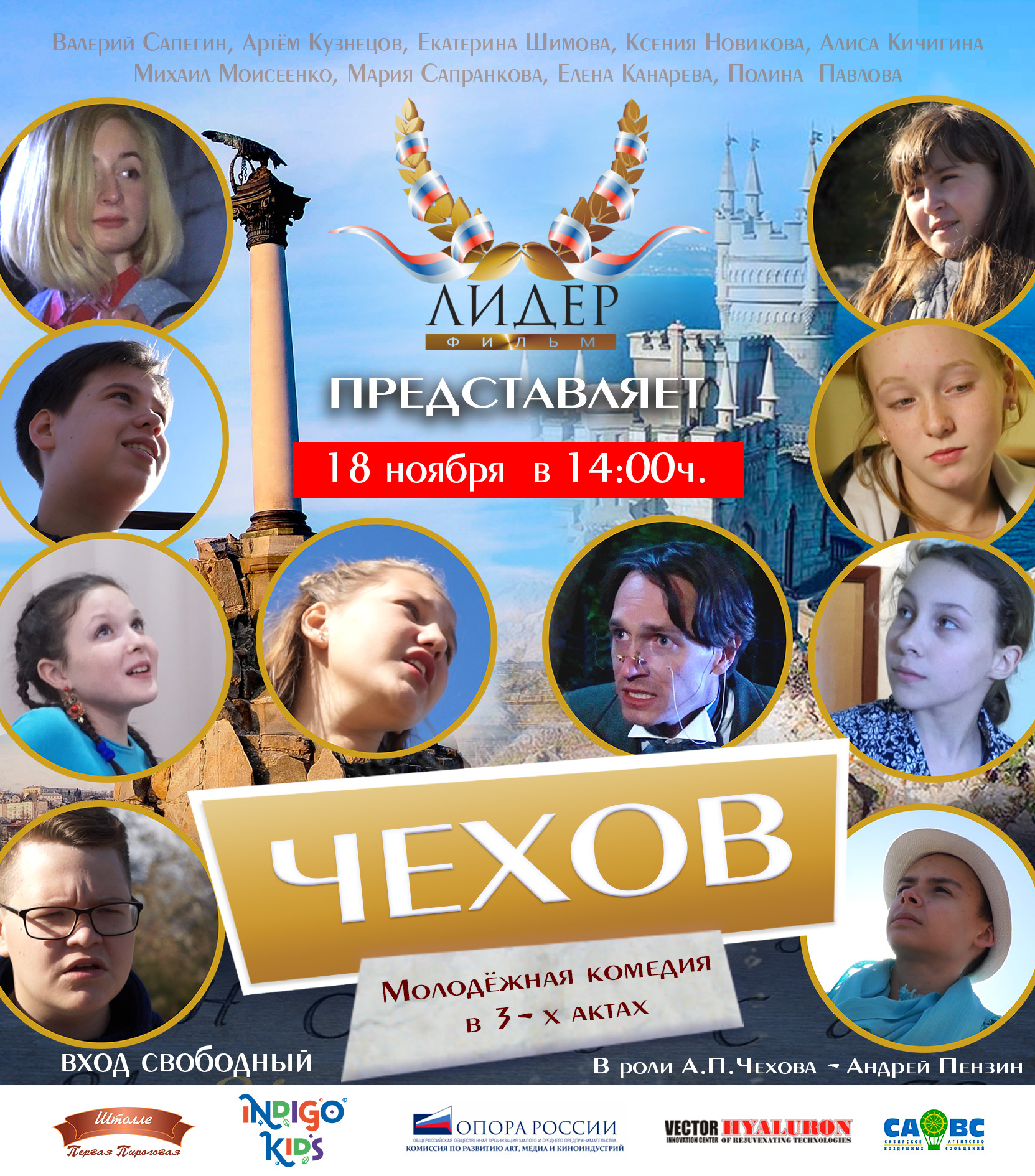 Международный центр «Лидер Фильм» и школьники Новосибирска представляют короткометражную комедию в трёх актах «Чехов», премьера которой пройдёт в кинозале «Синема» 18 ноября в 14:00.