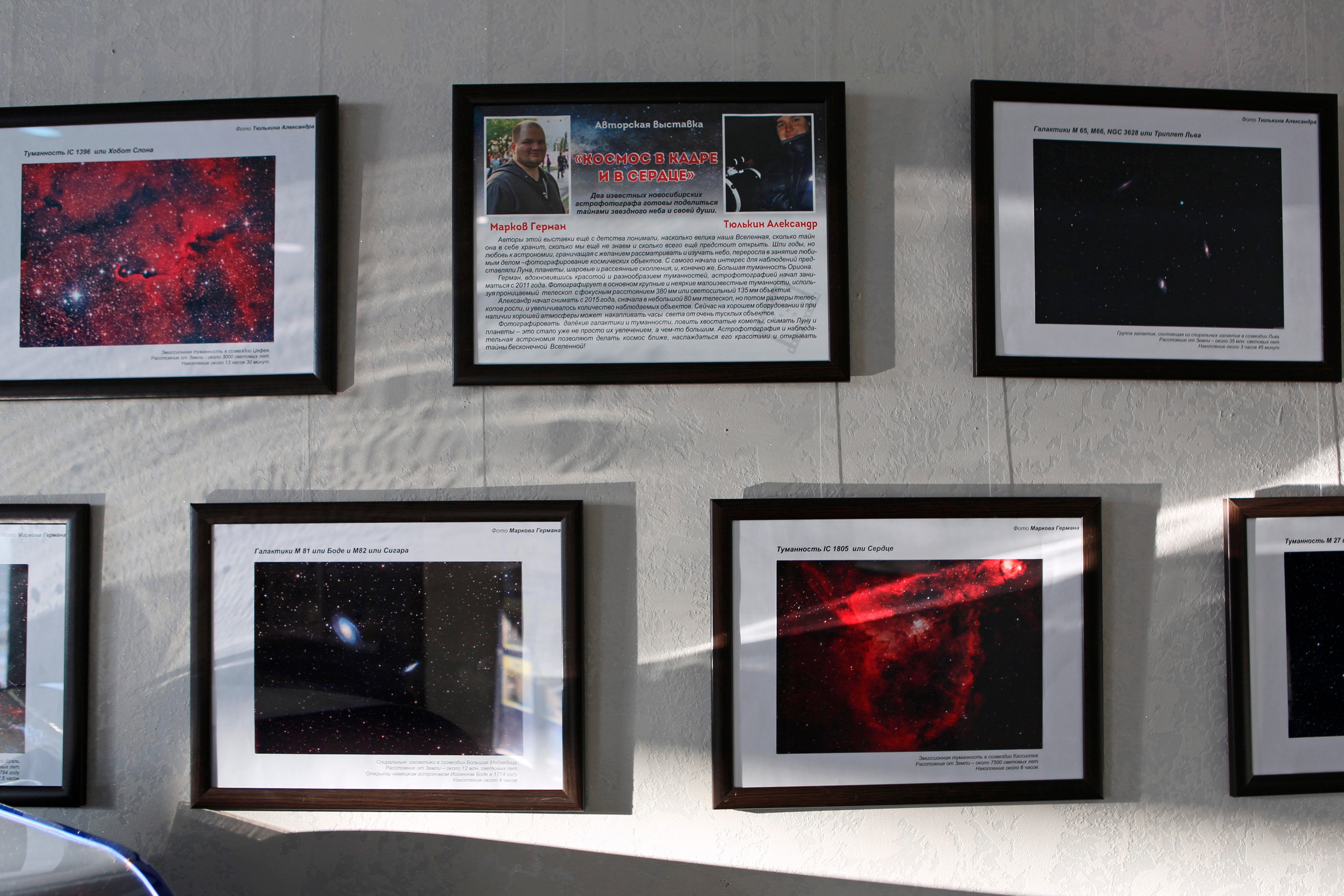 В холле 1-го этажа Большого новосибирского планетария открылась новая выставка «Космос в кадре и в сердце» двух известных новосибирских астрофотографов – Германа Маркова и Александра Тюлькина. Фотографировать далёкие галактики и туманности, ловить хвостатые кометы, снимать Луну и планеты – это не просто их увлечение, а что-то большее и дорогое сердцу. Мы приглашаем посетить нашу выставку, насладиться красотами космических объектов и открыть тайны бесконечной Вселенной!