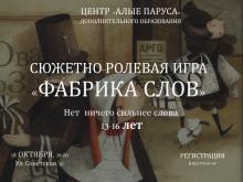 ЦДО «Алые паруса» приглашает учащихся на сюжетно-ролевую игру «Фабрика слов». Мероприятие проводится для детей 13-16 лет.