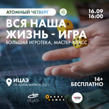 Ловите новую программу «Атомного четверга» от ИЦАЭ. И в этот раз мы предлагаем вам окунуться в игры с головой. Сначала три часа увлекательных приключений в мире настолок от сети фирменных магазинов Hobby Games, затем мастер-класс о том, как сделать образовательную игру интересной!