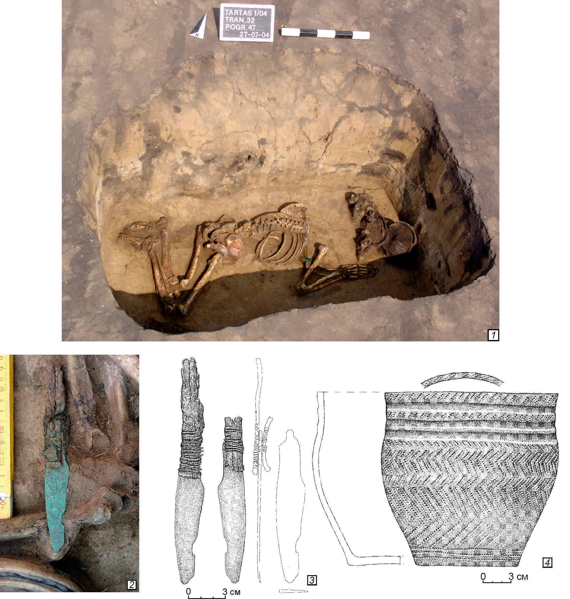 Оказалось, что это место тысячелетиями становилось последним пристанищем людям разных эпох и культур. Самые ранние могилы появились здесь 5-6 тысяч лет назад, в эпоху неолита, последние – уже относительно поздно, во времена древних тюрок и в Средних веках. К настоящему моменту на Тартасе-1 исследовано 800 захоронений. Кроме того, изучено свыше полутора тысяч ритуальных и бытовых ям, – следов трапез и подношений, которые совершали у могил древние обитатели местности, поминая умерших предков и обращаясь к ним за помощью и покровительством.