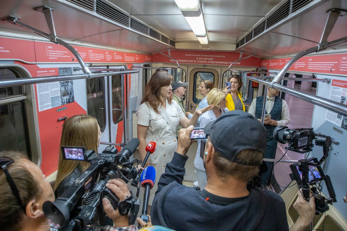 Оформленный тематический вагон метро запущен. Это один из самых эффективных форматов коммуникации с жителями Новосибирска и привлечения их внимания к проекту городского выставочного маршрута, старт которого намечен на сентябрь. Он будет проложен по 4 площадкам: НРОО «АРТ-Центр “Красный”», Новосибирский государственный художественный музей, Городской центр культуры «ЦК 19», «Гостиная Союза художников России».