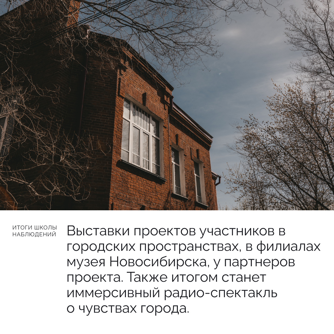 Помимо получения чувственного опыта и овладения новыми навыками, итогом проекта будут выставки с результатами ШН: в городском, уличном пространстве, у партнеров, в филиалах музея Новосибирска. Также итогом станет иммерсивный радио-спектакль о чувствах города.