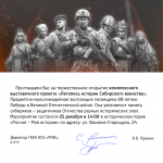 Выставка посвящена 80-летию Победы советского народа в Великой Отечественной войне. Она откроет череду тематических выставок и событийных мероприятий, посвящённых главному празднику нашей Родины.