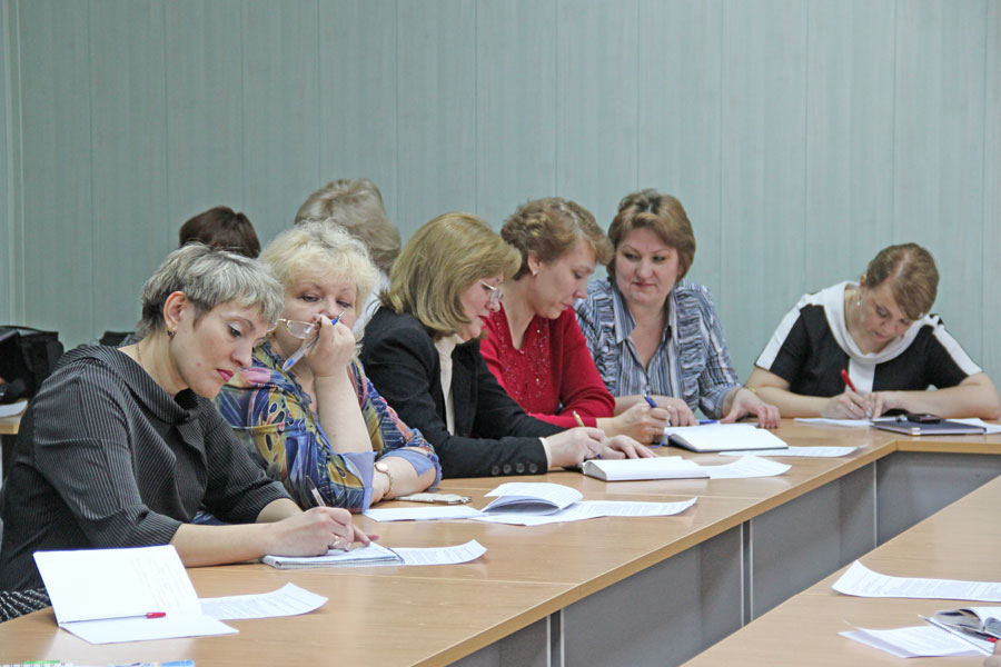 Собравшиеся обсудили вопросы содержания рабочей программы учителя и стандарты второго поколения. Разбираться в тонкостях педагогического процесса педагогам помогала Тамара Ивановна Горелова, ведущий научный сотрудник, доктор педагогических наук, профессор НИПКиПРО.