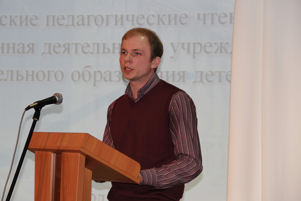 Дмитрий Александрович Растворов, заместитель директора по инновационно-экспериментальной работе ГЦРО, рассуждал о дополнительном образовании детей в условиях введения ФГОС общего образования нового поколения.