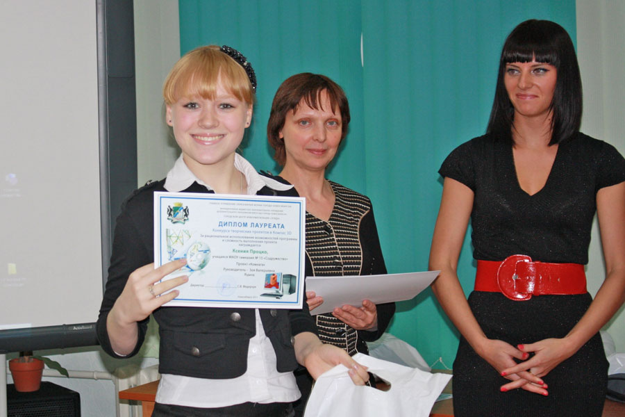 Памятные подарки, предоставленные Компанией Аскон-Новосибирск, ГЦИ «Эгида» и ООО «Сибверк», вручили победителям представители компании Аскон-Новосибирск Александра Македонская, менеджер по работе с учебными заведениями, и Дмитрий Яковенко.
