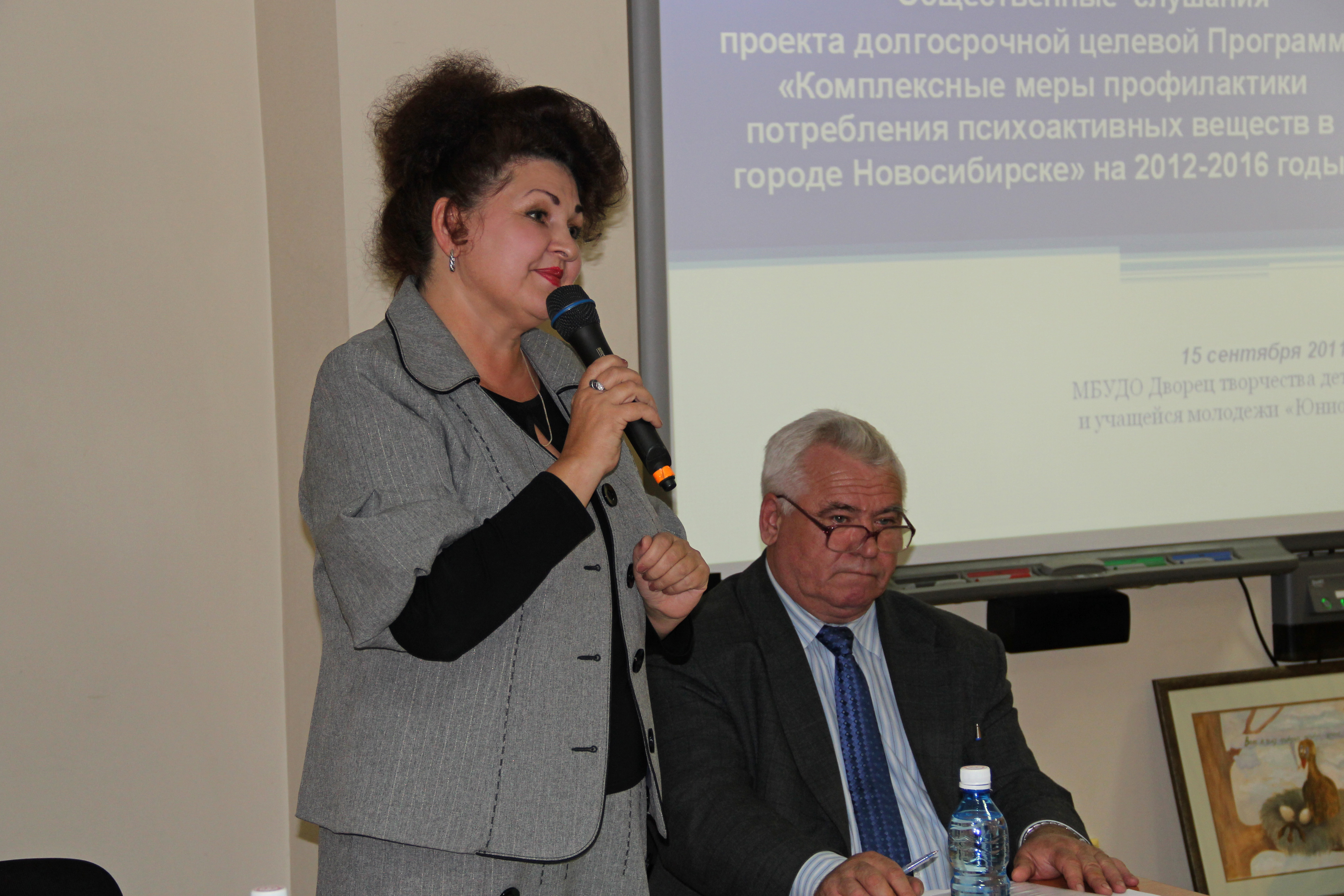 15 сентября во Дворце творчества детей и учащейся молодежи «Юниор» прошли общественные слушания – обсуждение новой долгосрочной целевой программы «Комплексные меры профилактики потребления психоактивных веществ в городе Новосибирске» на 2012-2016 годы.