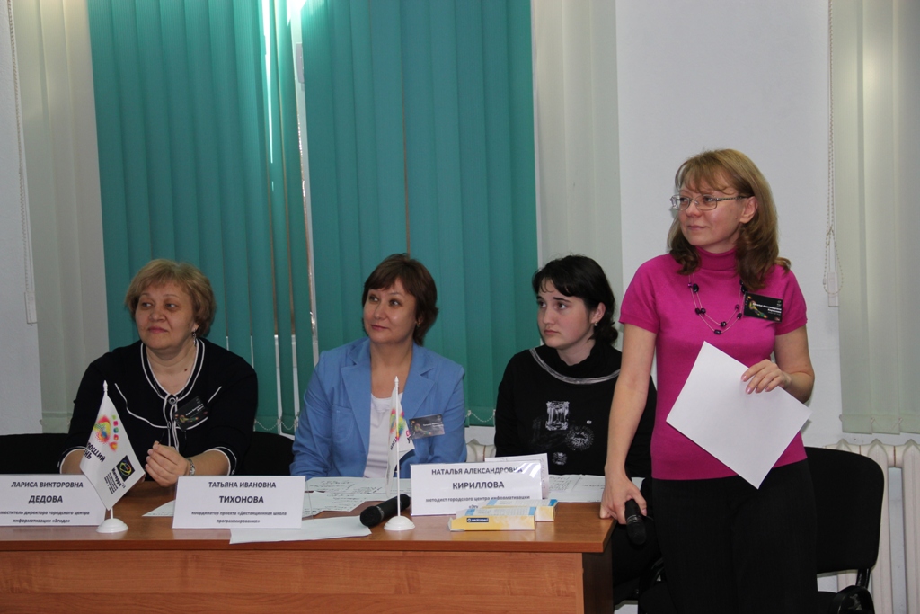 Тихонова Татьяна Ивановна, научный сотрудник ИСИ СО РАН, старший преподаватель НГУ, завуч-координатор Летней школы юных программистов, член Международного Цифрового сообщества НР представила план школы: в октябре-декабре 2011 года будет предложена серия заданий для программирования на паскале, в январе пройдет дистанционная олимпиада; завершится работа школы в мае 2012 года онлайн-конкурсом и сертификацией участников.