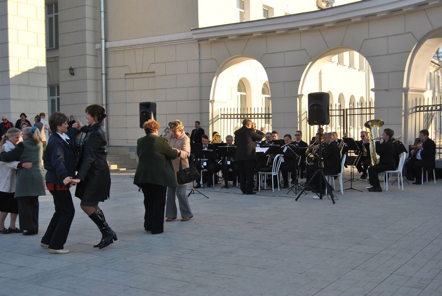После концерта на крыльце Дома творчества играл духовой оркестр, а все гости имели возможность послушать музыку, пообщаться и потанцевать под любимые мелодии.