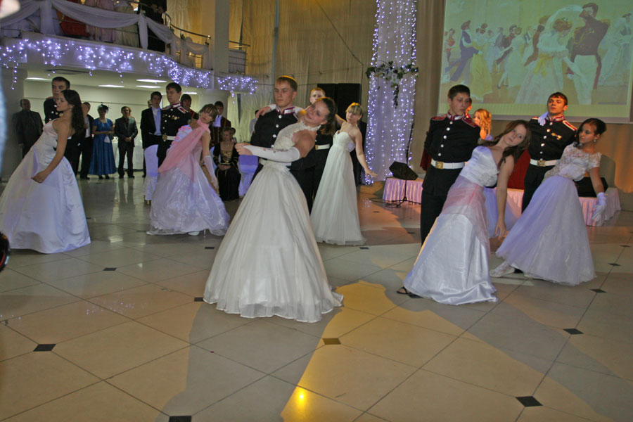 Все – ребята, учителя, гости – с головой окунулись в жизнь той романтической эпохи. Ведь попасть на бал с участием величайших особ, некогда оказавших влияние на жизнь России – большая честь. Девушки пришли в белых бальных платьях, как и положено при первом выезде в свет, юноши – в черных как смоль фраках. Все сегодня любезны и обходительны: юные барышни пленительно улыбаются, дамы степенно прогуливаются, кавалеры балуют их комплиментами и ни за что не садятся в присутствии своих одноклассниц.