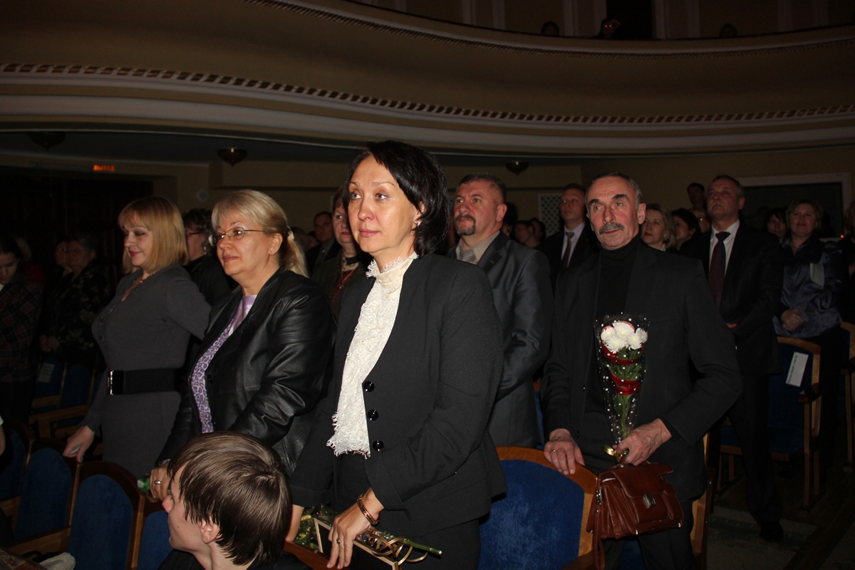 В торжественной церемонии приняли участие заместитель мэра города Александр Петрович Титков, начальник Главного управления образования мэрии Наталья Николаевна Копаева, председатель областной общественной организации «Профсоюз работников народного образования и науки» Сергей Александрович Нелюбов, руководители образовательных учреждений, ветераны педагогического труда, деятели культуры и искусства.