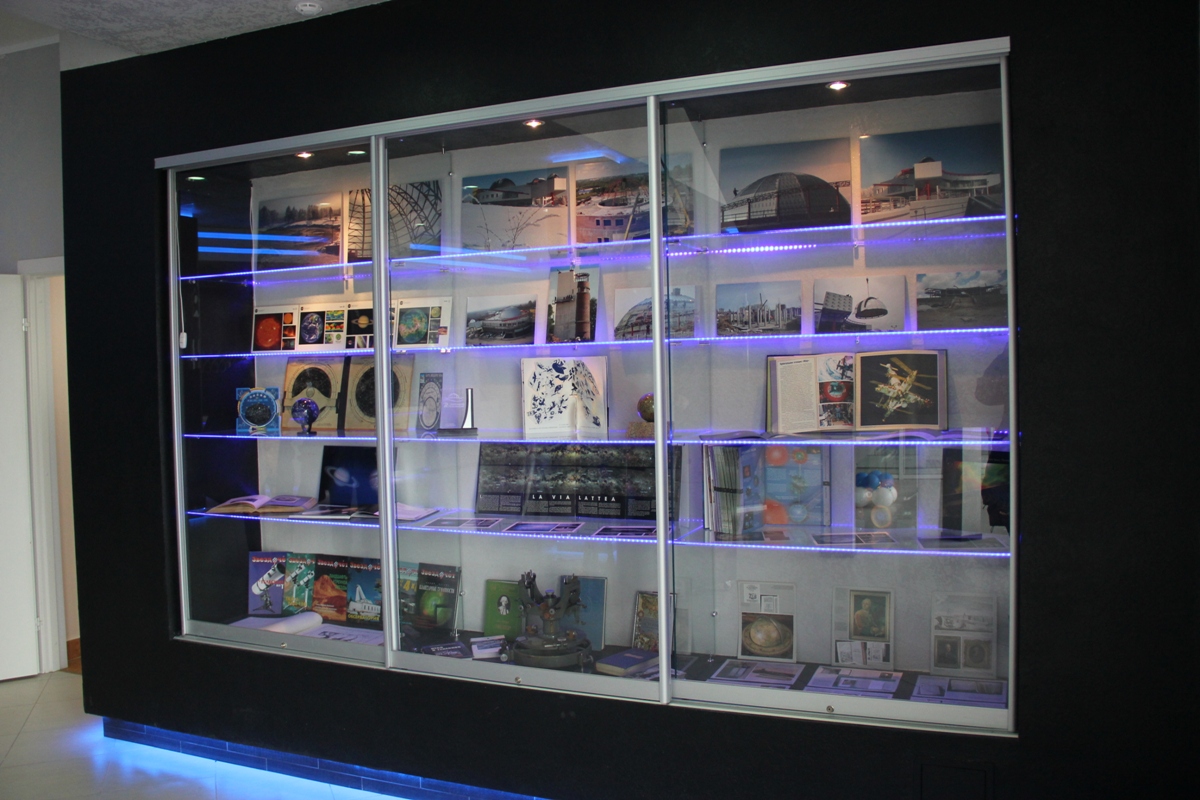 Еще одна гордость центра – мощные телескопы. Один из них сконструировали на нашем приборостроительном заводе. Его зрительная труба имеет длину два метра. Второй прибор — дань современности – зеркальный телескоп. Они установлены в двух обсерваториях по обе стороны холла. Температура здесь равна температуре воздуха на улице. Таковы условия для наблюдения за звездами с минимумом погрешности.