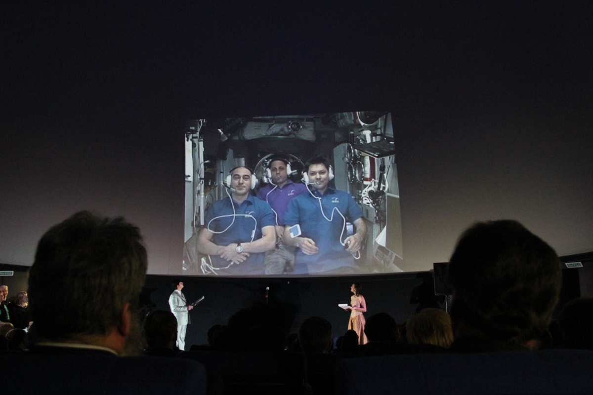 В ходе церемонии в звездном зале состоялся сеанс видеосвязи с орбитальной космической станцией: российские космонавты поздравили Новосибирск с появлением в городе планетария. Почетными гостями праздника стали дважды Герой Советского Союза, летчик-космонавт, Заслуженный деятель науки РФ Виктор Петрович Савиных, Герой России, летчик-космонавт Александр Иванович Лазуткин, заместитель НИИ «Аэрокосмос» Михаил Андранникович Шахраманьян.