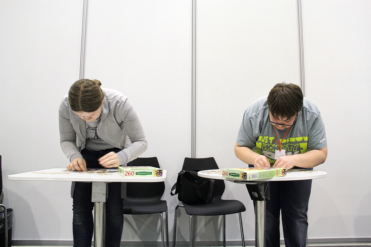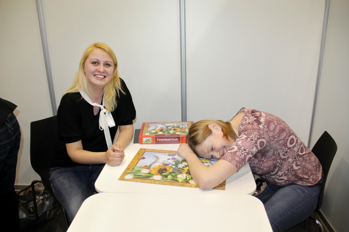 С совсем небольшим отставанием, но по меркам профессиональных пазлеров уже значительным, финишировала Гузель Хайдарова – 34 минуты 56 секунд. 3 место заняла Надежда Шигина с результатом 42 минуты. В подарок от организаторов девушки получили пазлы из новой коллекции Heye на 1000 деталей.