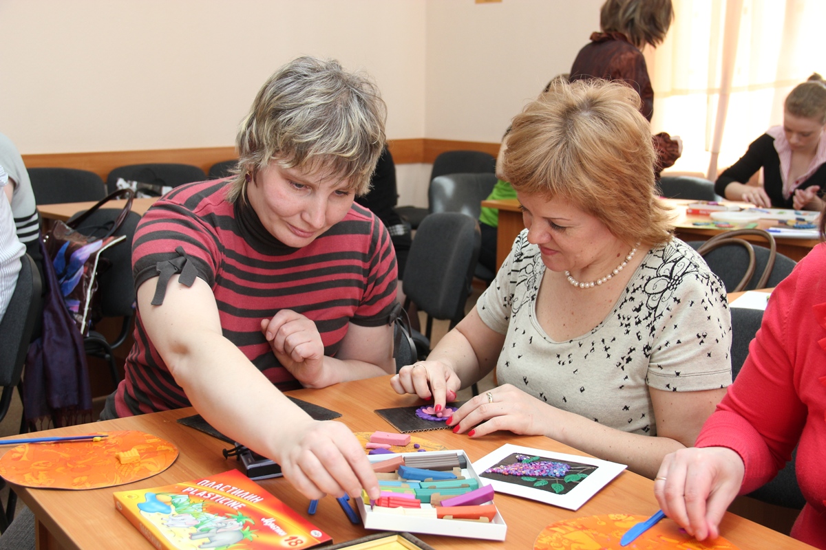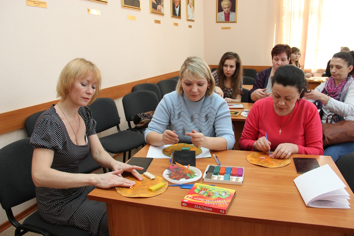 Далее воспитатели приняли участие в мастер-классе «Развитие мелкой моторики у детей дошкольного возраста через пластилинографию», который провела Волгина Елена Николаевна – воспитатель МКДОУ города Новосибирска «Детский сад №402», участник I городского конкурса «Новой школе – современный учитель»; и мастер-классе «Приемы и методы на занятиях по изобразительному искусству» от Асташкиной Анны Витальевны – педагога дополнительного образования первой квалификационной категории МБОУ ДОД ДДТ им. В.Дубинина.