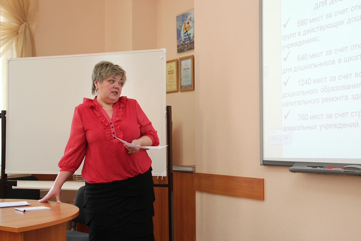 О современных социально-гуманитарных задачах и перспективах развития дошкольного образования в Новосибирске рассказала Диринг Елена Борисовна, специалист отдела дошкольного образования Главного управления образования мэрии города Новосибирска.