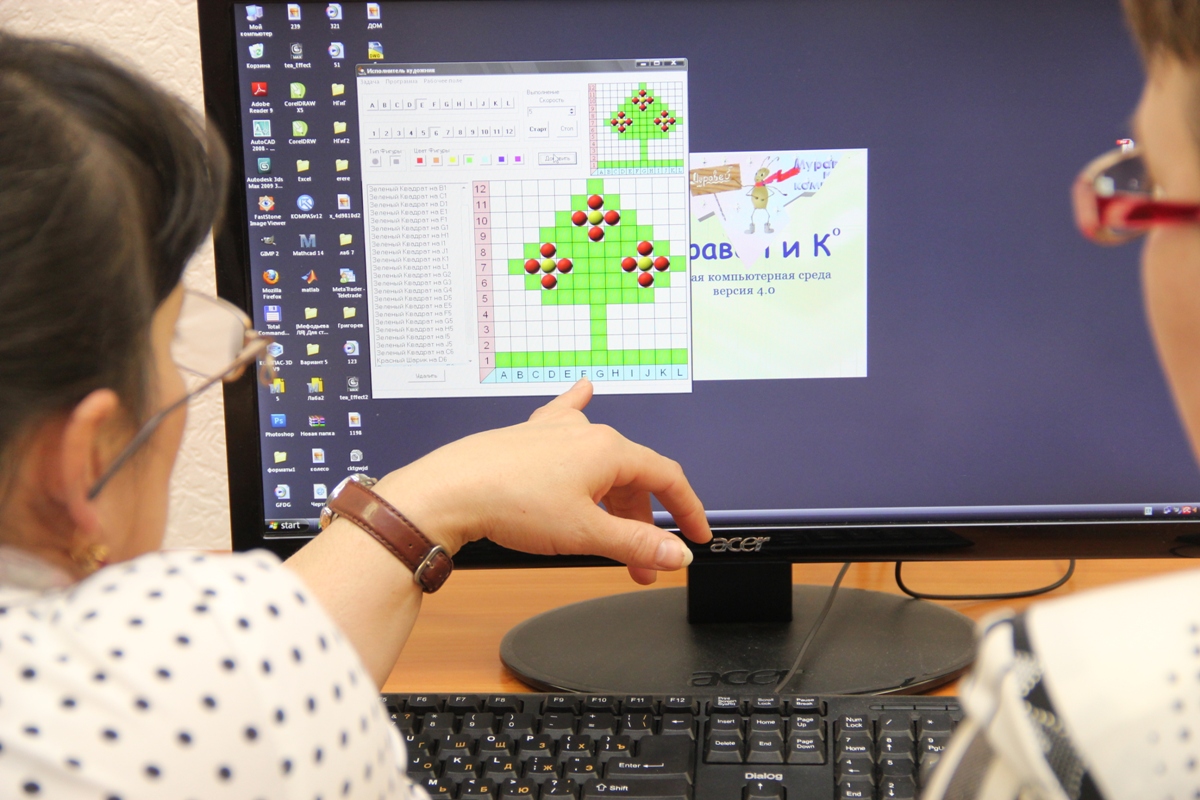 Также Лариса Викторовна познакомила учителей с работой в учебной компьютерной среде «Муравей и К». Исполнитель «Муравей» – это программа, содержащая учебную компьютерную среду для формирования и закрепления у учащихся 4-6 классов знаний и навыков по теме «Алгоритмизация». Среда позволяет работать с исполнителем в ручном, отладочном и автоматическом режимах. Прототипом муравья является исполнитель из книги «Муравьиные сказки» Г.Н. Гутмана и О.М. Карпиловой.