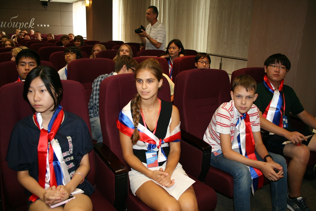 Самолет с молодежными делегациями из Кореи и Японии несколько задержался, поэтому волнение у наших ребят достигло предела. Перед входом в зал, японские и корейские ребята успели дать интервью настойчивым журналистам. Их, прежде всего, интересовало, что школьники хотят увидеть в Сибири, слышали или читали они о нашем городе, с какой целью приехали к нам в гости. Ответы были самые разные: