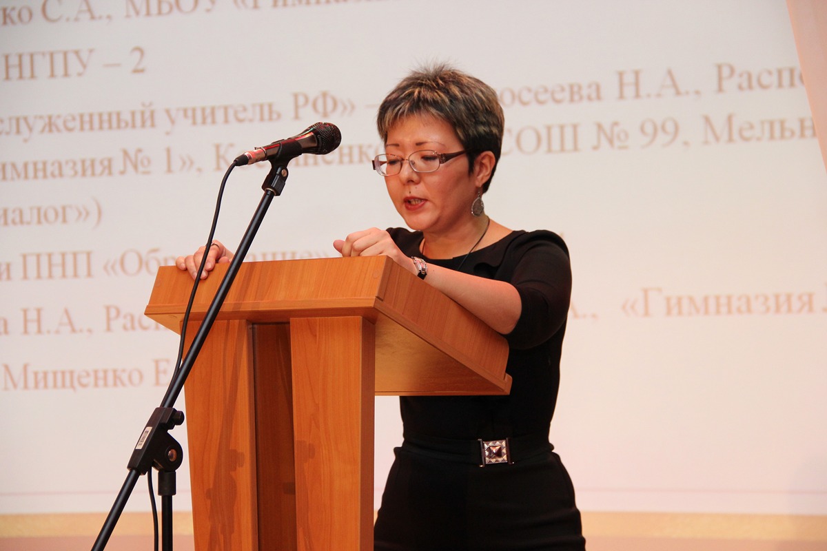 О роли методической службы в диссеминации передового педагогического опыта образовательного учреждения рассказала Лилия Анатольевна Кайраканова, учитель русского языка и литературы МАОУ города Новосибирска «Гимназии №1».
