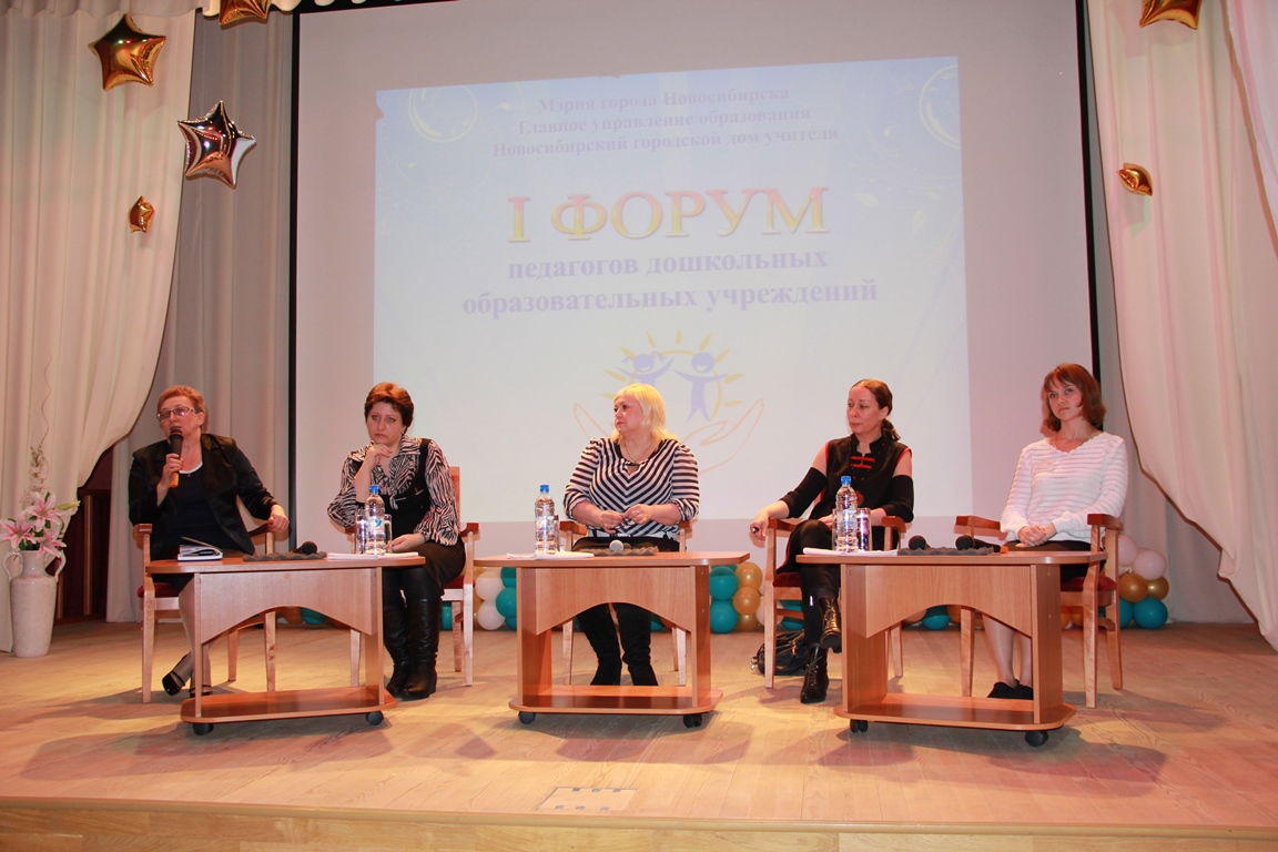 29 марта в Новосибирском городском доме учителя прошел I форум педагогов дошкольных образовательных учреждений города Новосибирска. Участие в мероприятии приняли работники 45-ти дошкольных образовательных учреждений всех районов Новосибирска и Новосибирского района. Форум прошёл под девизом: «Современные требования – новые идеи!»